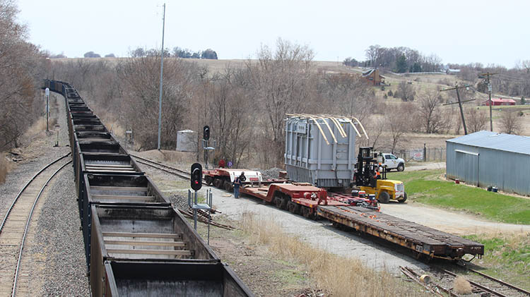 The spare transformer was housed at a rural Cass County substation. Heavy Hauling moved it to a train yard in nearby Murray, Neb., in late April. The transformer was shipped by Union Pacific and then taken to OPPD’s Elkhorn Service Center, and finally, to the substation in northwest Omaha.